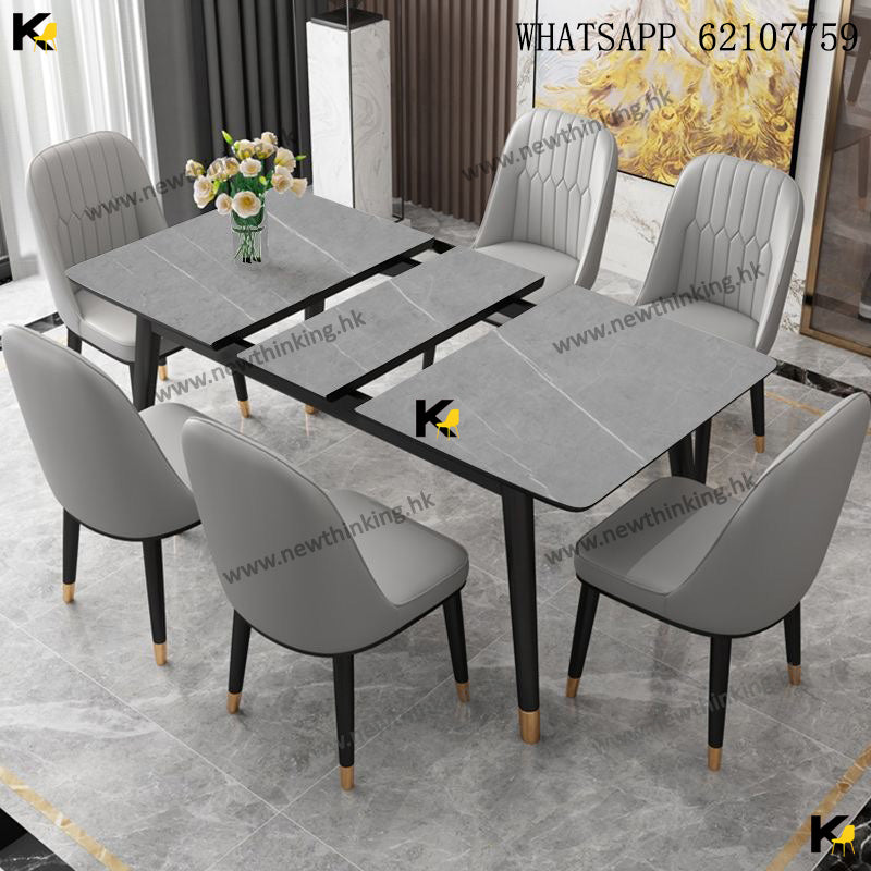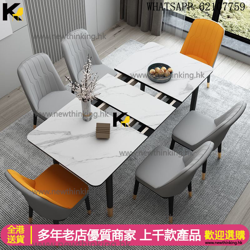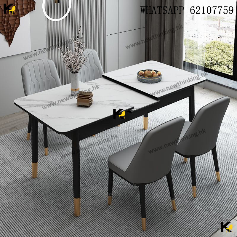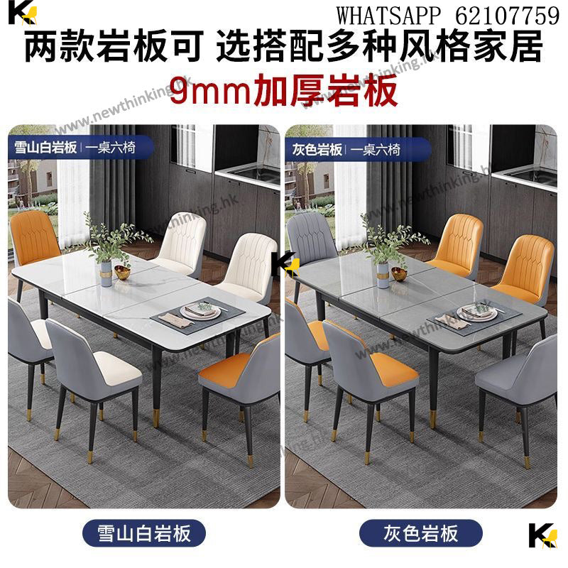 A&0488伸縮枱岩板餐枱收縮餐桌椅組合折疊枱摺枱食飯枱餐椅