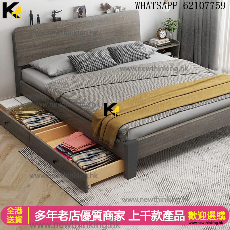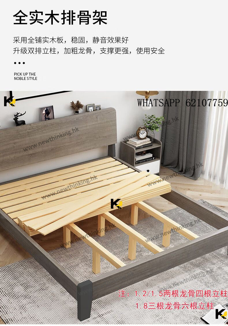 A&0540實木床雙人床單人床床架全新包送貨白色床架超強承重