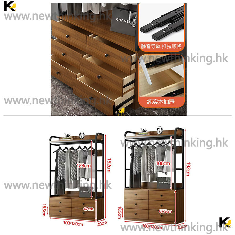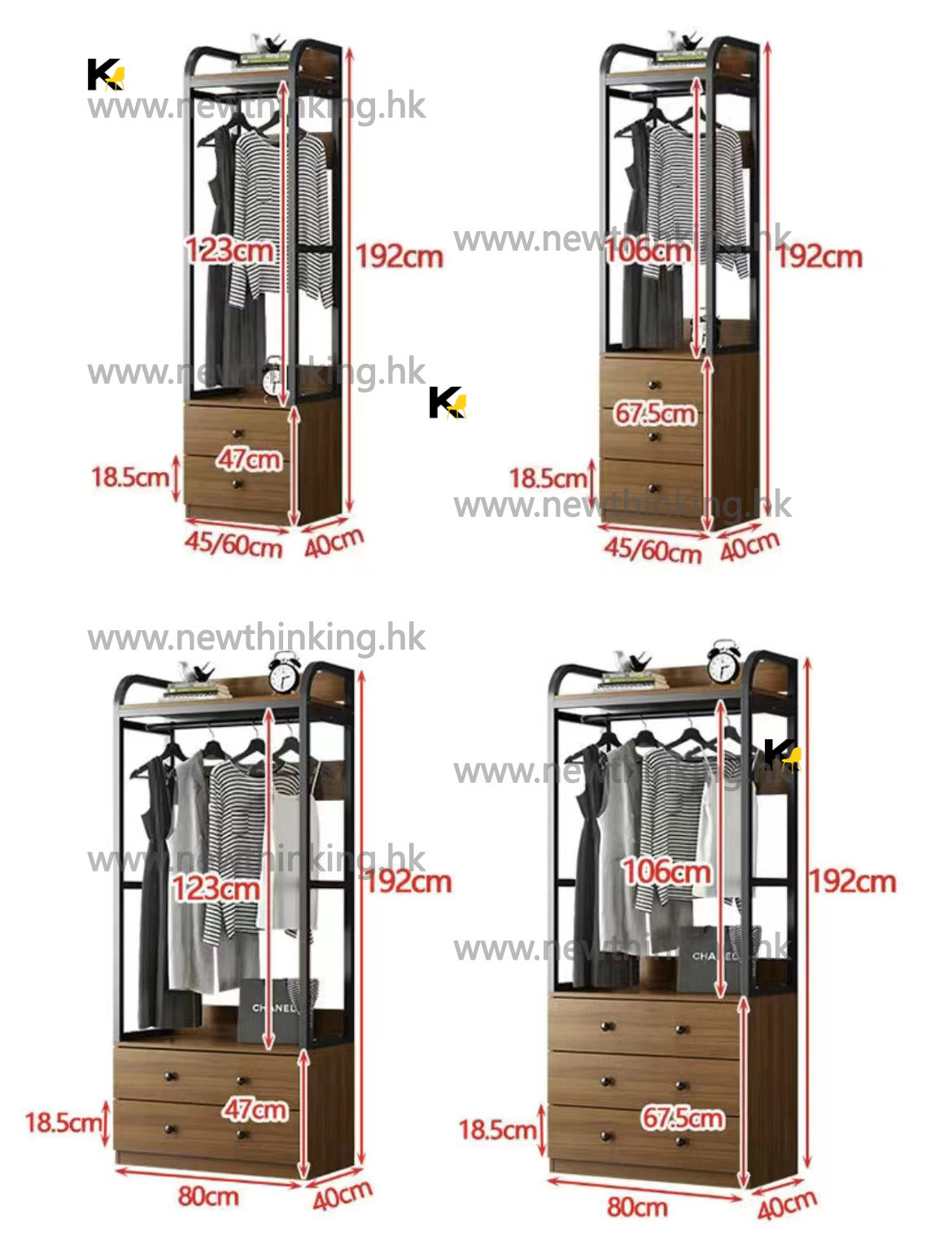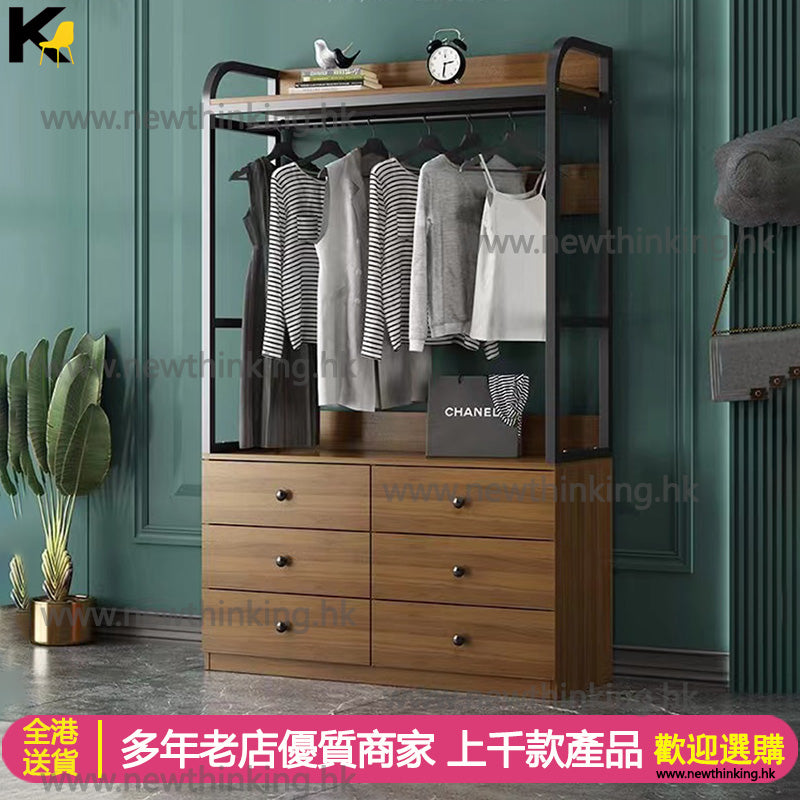 A&0609實用衣架衣櫃衣帽櫃收納櫃儲物櫃掛衣架鐵藝衣櫃落地置物架臥室收納櫃抽屜櫃櫃桶