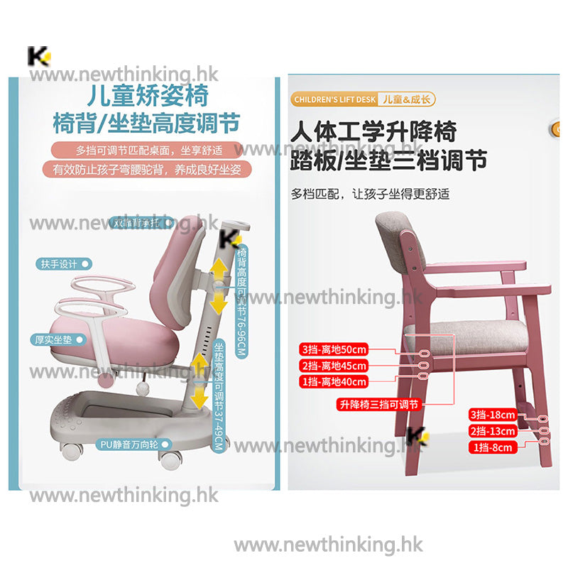 A&0617實木環保兒童學習桌 寫字台 升降枱 寫字椅 升降椅 桌椅組合 書台書架組合 可調較高度全新包送貨Desk/Lift Chair/Children’s Table/Children‘s Chair