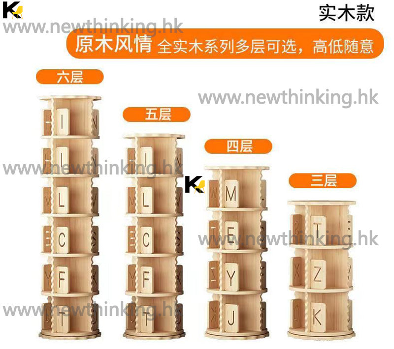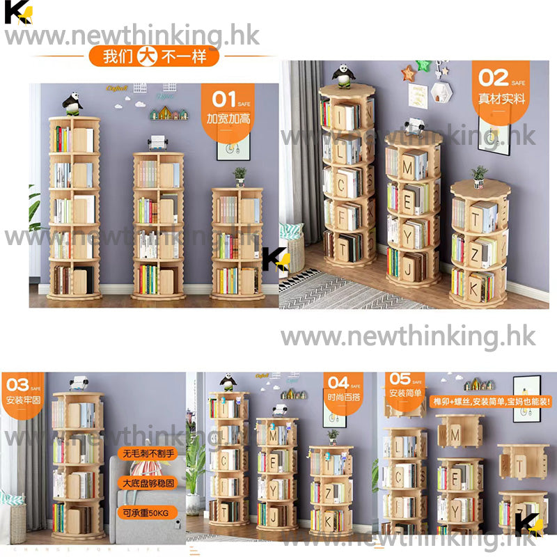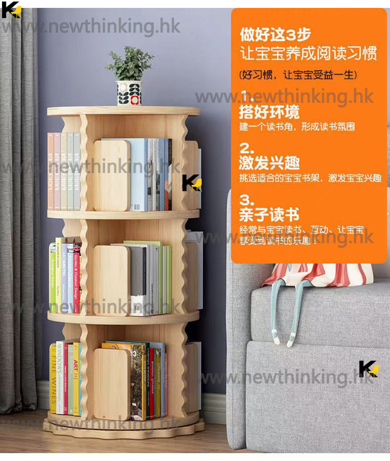 A&0665實木兒童書櫃 360度旋轉書架 落地置物架 置物櫃