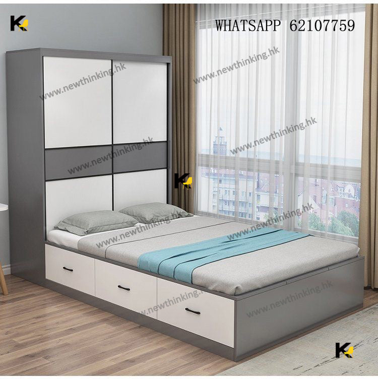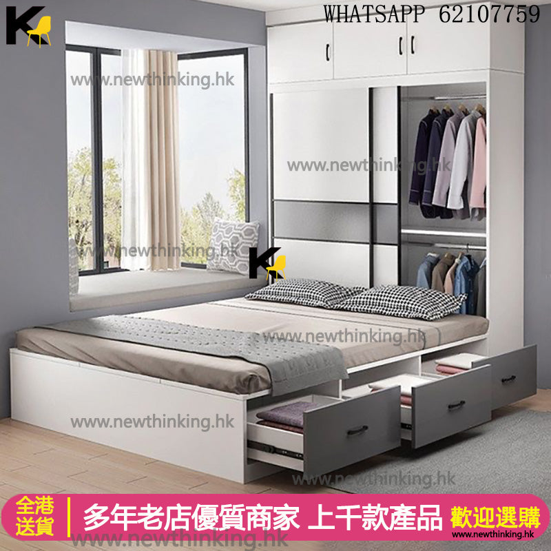 A&0706衣櫃床一體多功能高箱床組合櫃兒童衣帽組合床