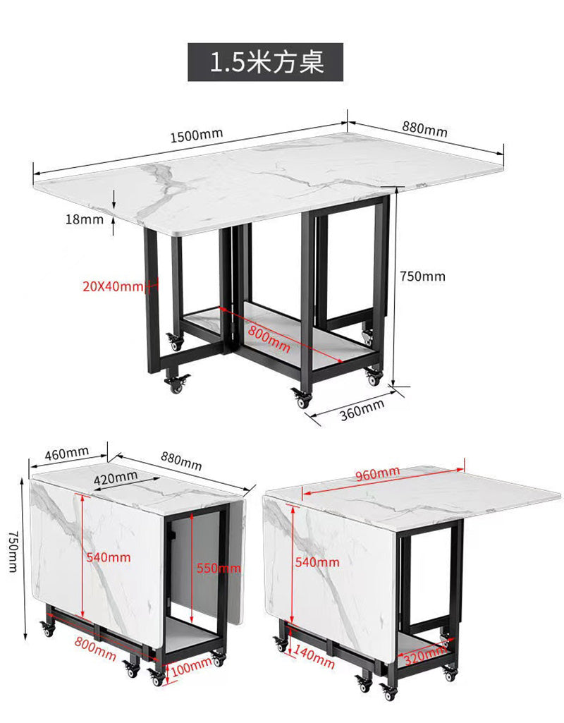 A&0746折疊餐枱 摺枱 蝴蝶枱 餐桌餐椅組合 吃飯桌 可收納移動小桌子 方桌帶轆 方枱