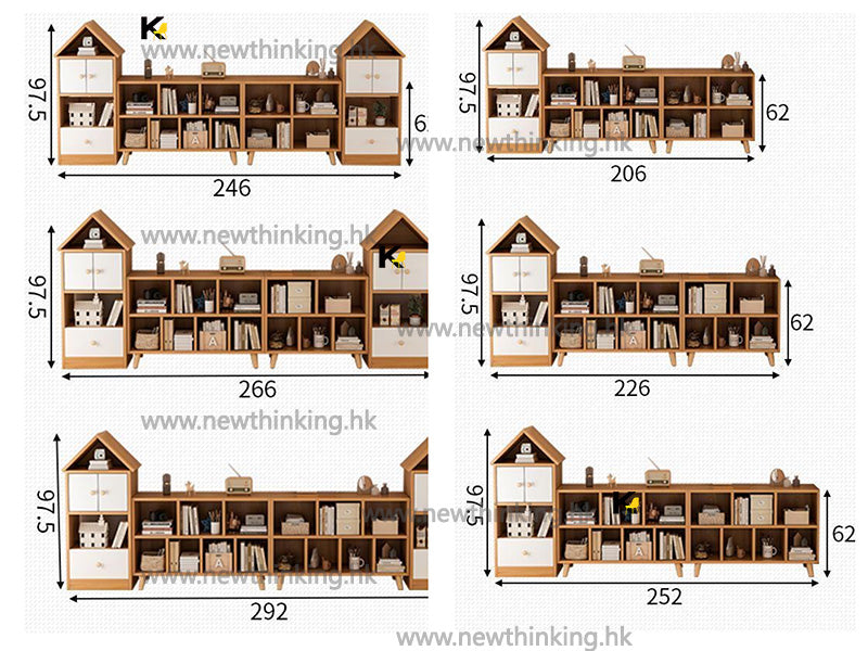 小房子+七格+五格+小房子266*24*97.5cm:$1250