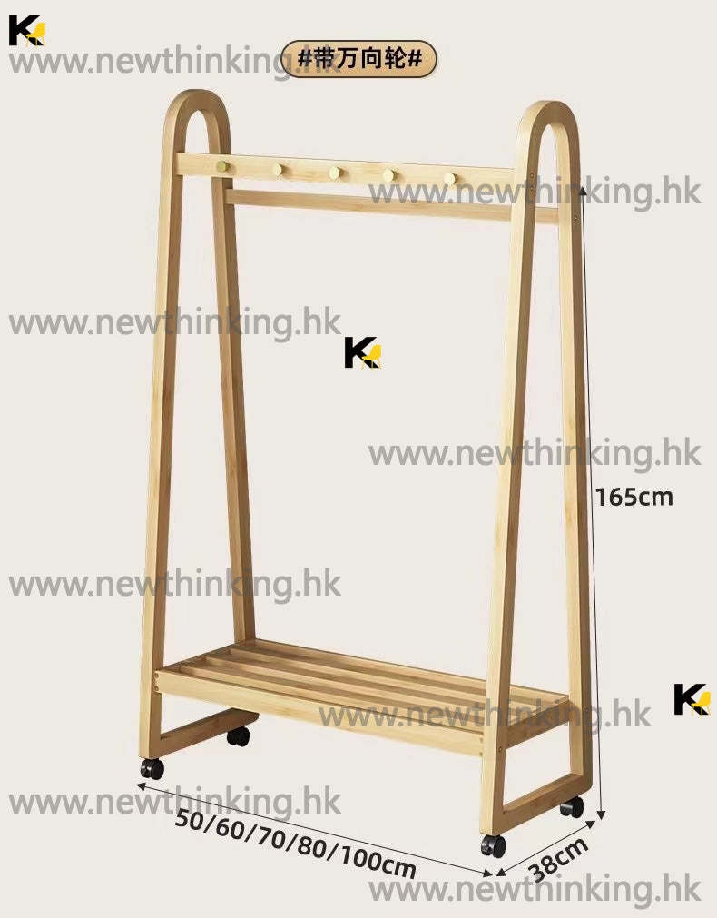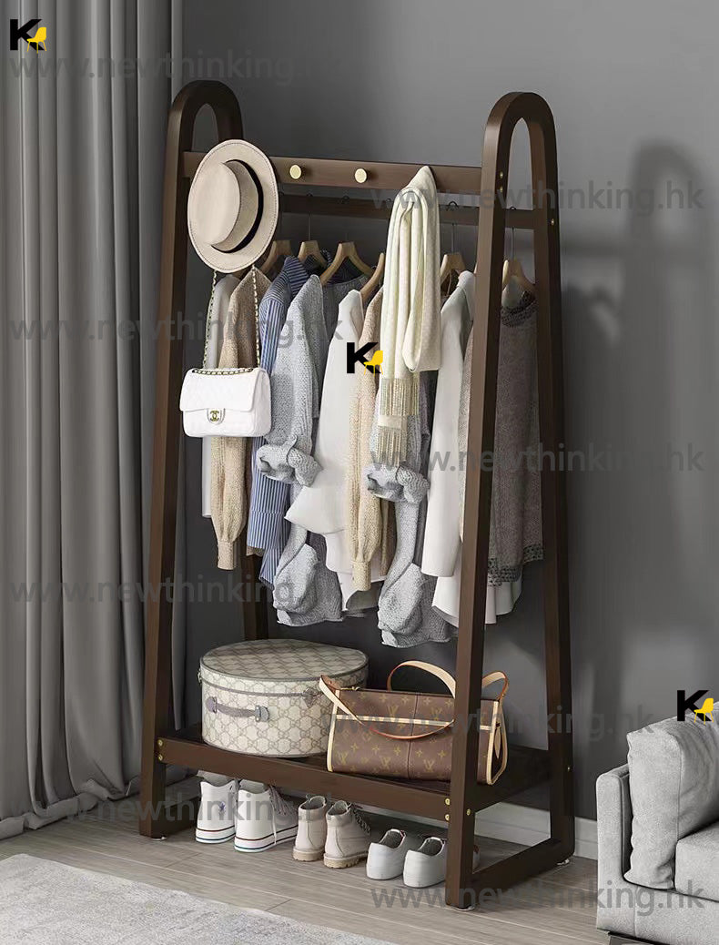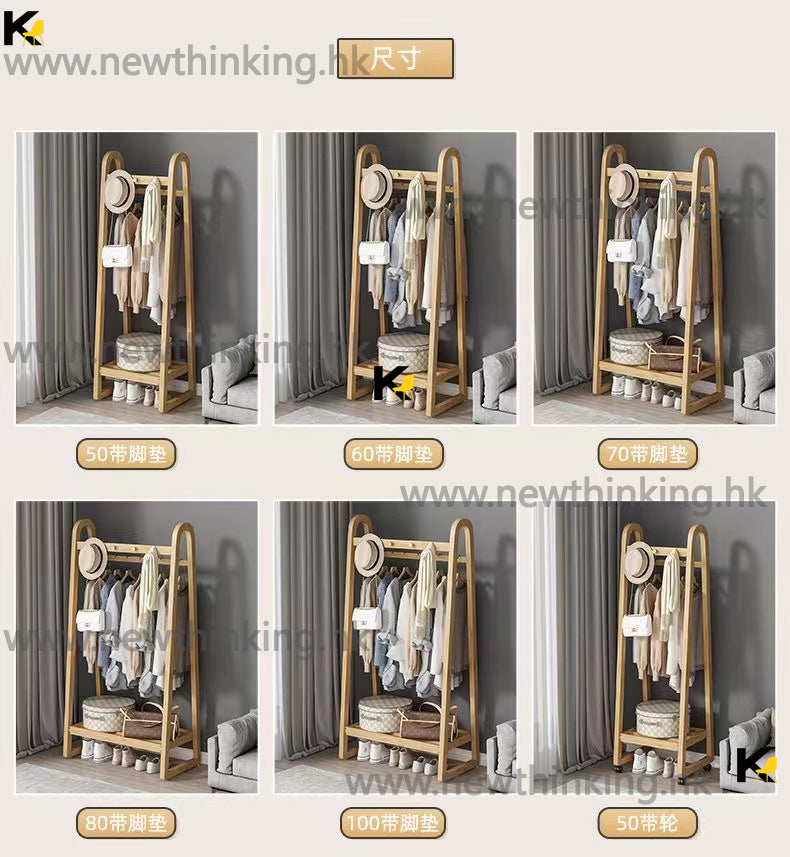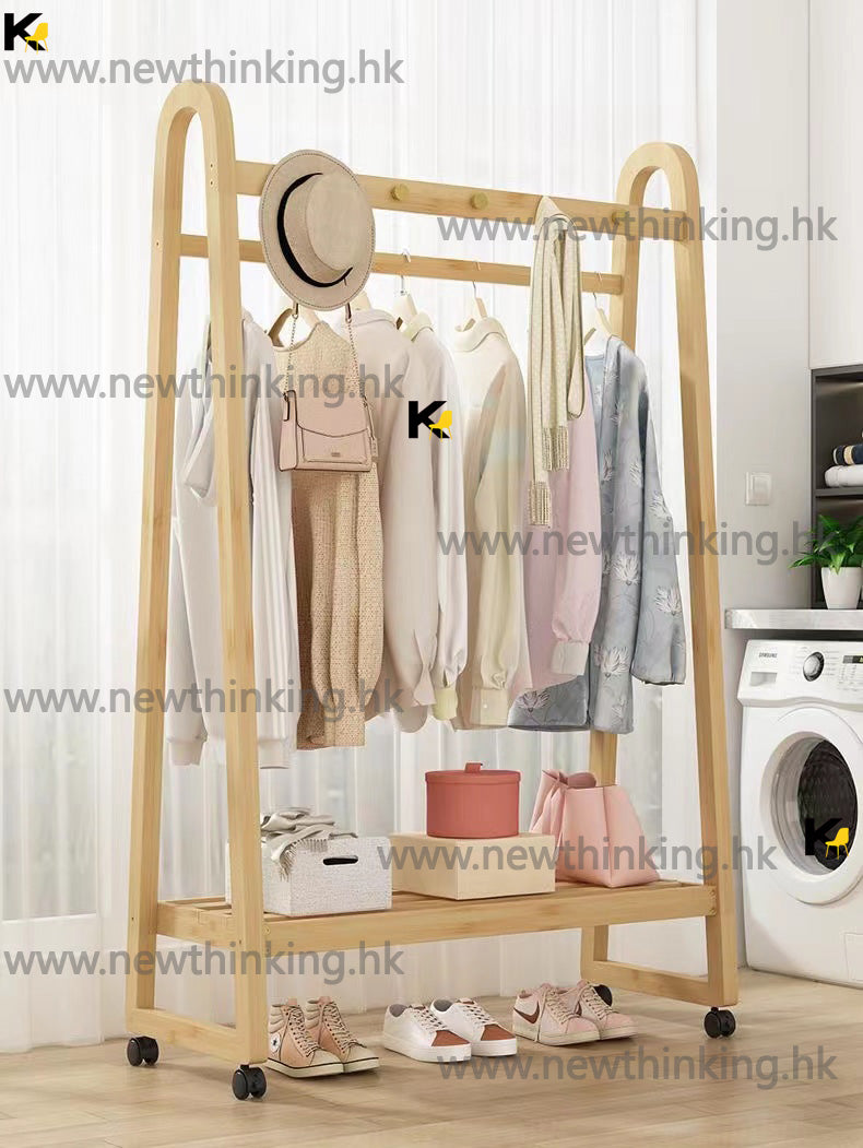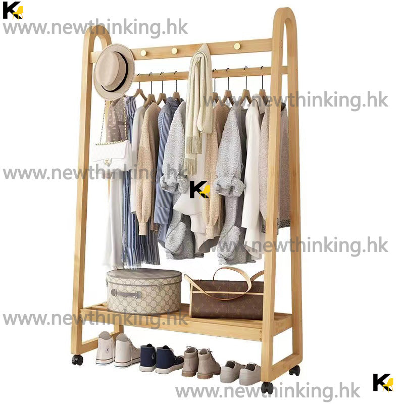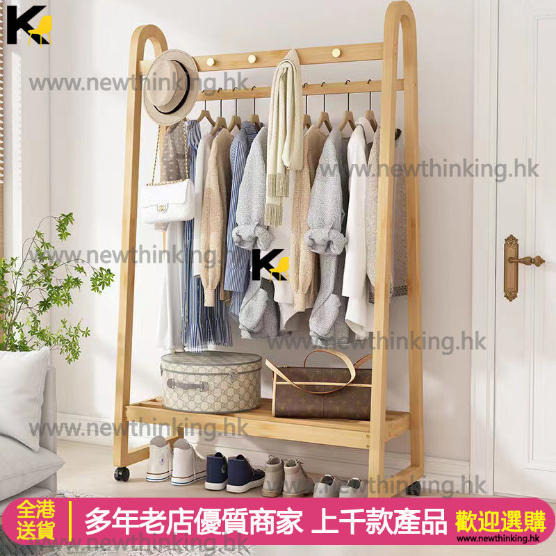 A&0758實木衣架置物架衣帽櫃掛衣架晾衣架掛衣服架子簡約架子帶轆可移動帶輪子全新包送貨