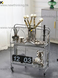 A&0799免安裝中古風玻璃小推車 可折疊茶几 床邊收納架 角几 邊幾 客廳咖啡枱 可移動置物架