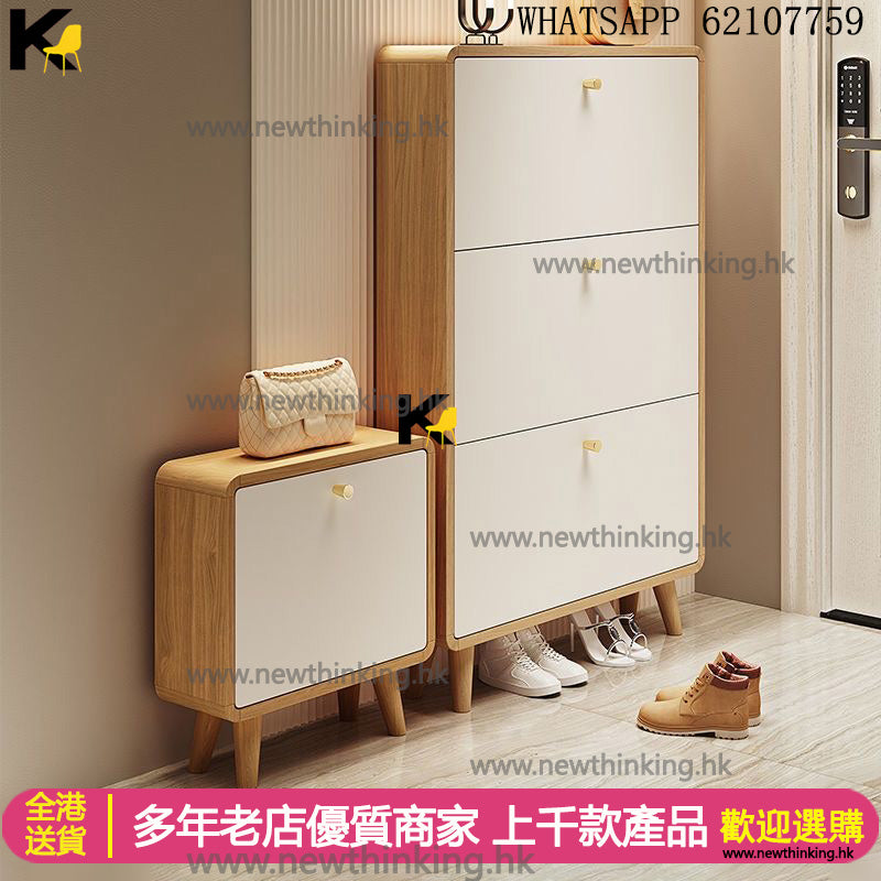A&1714翻斗鞋櫃換鞋凳組合櫃 超薄鞋櫃 鞋架 入門收納櫃 實木腿門口儲物櫃 換鞋架 鞋子收納櫃子全新包送貨
