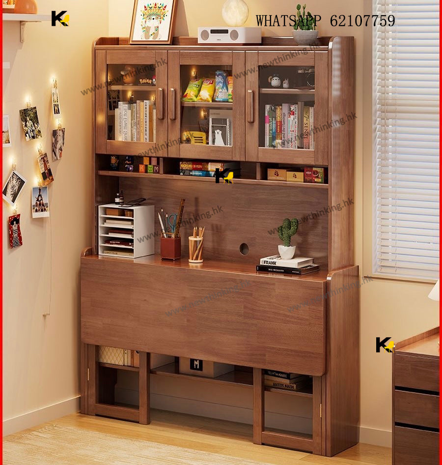 A&1828實木多功能組合枱櫃 書枱書櫃 餐枱餐邊櫃一體櫃 折疊枱 摺枱櫃 電腦枱 辦公枱 電腦桌 書枱 寫字枱 學習枱 多用途桌子儲物櫃 收納櫃