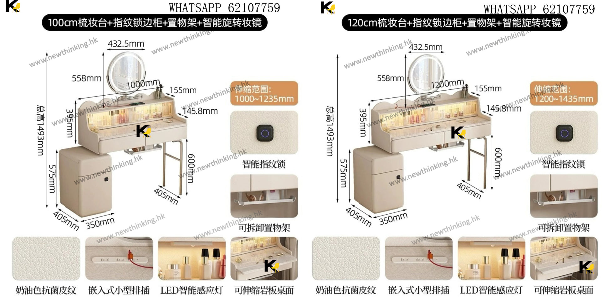 A&1868 newthinking智能梳妝枱指紋鎖床頭櫃化妝品收納櫃密碼櫃梳妝桌化妝桌保險櫃收納枱凳子鏡子
